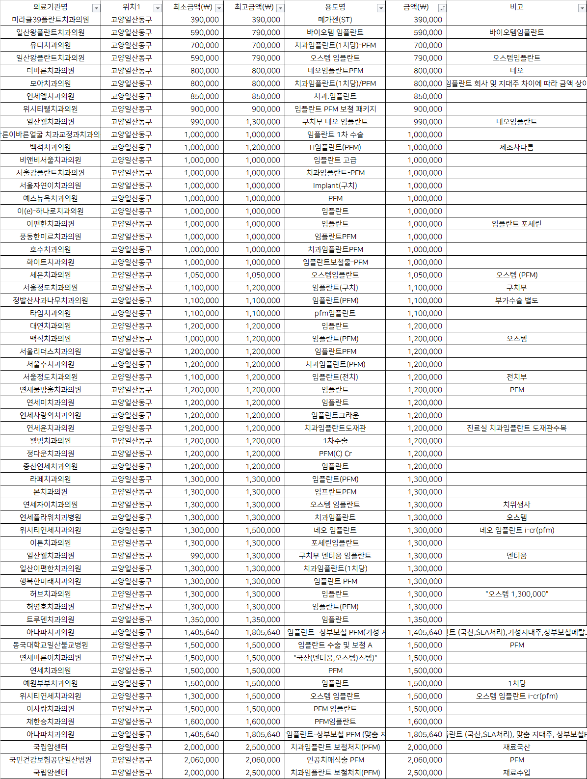 국민건강보험공단일산병원 인공치매식술 PFM           2,060,000 PFM
