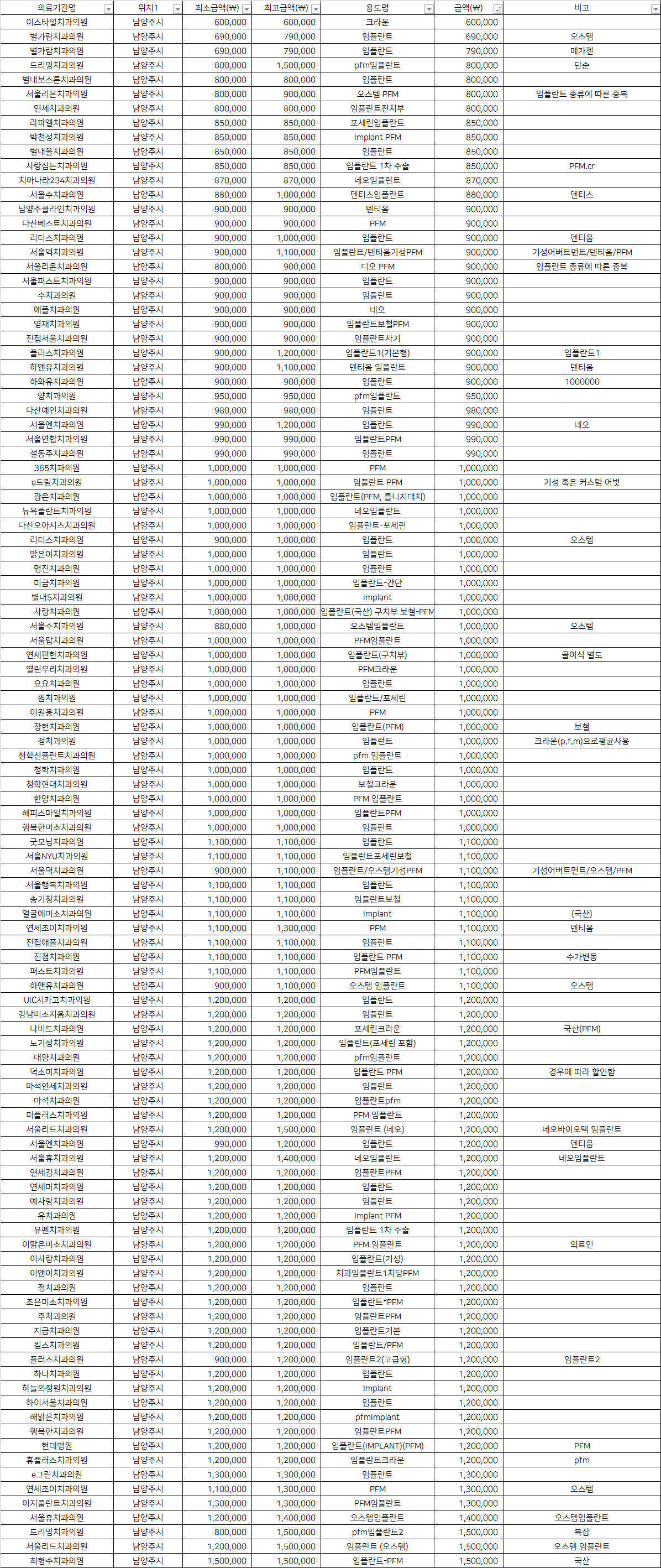 별가람치과의원 임플란트               790,000 메가젠