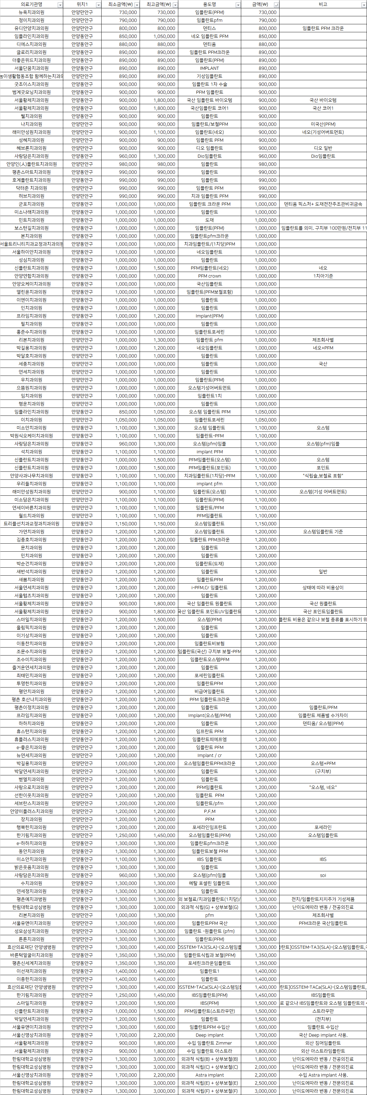 | 서울단꿈치과의원 | 안양동안구 | IMPLANT | 890,000 | |