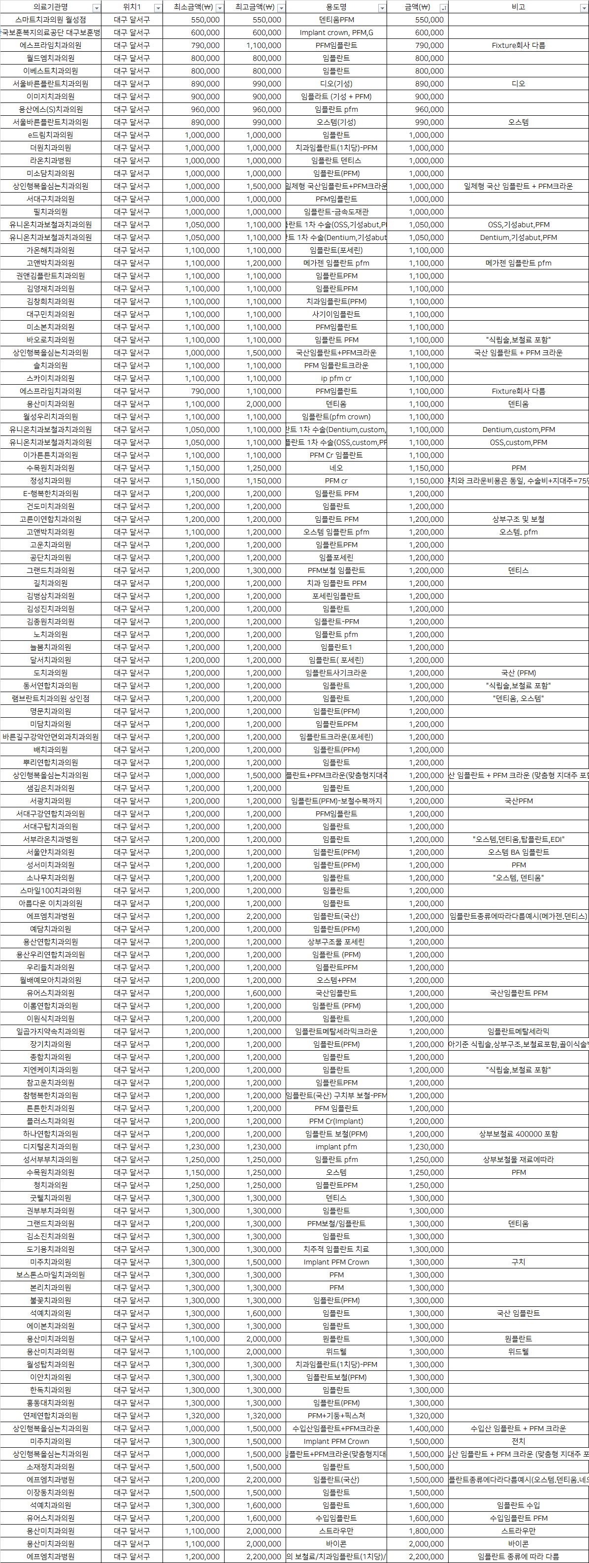 에스프라임치과의원 PFM임플란트           1,100,000 Fixture회사 다름