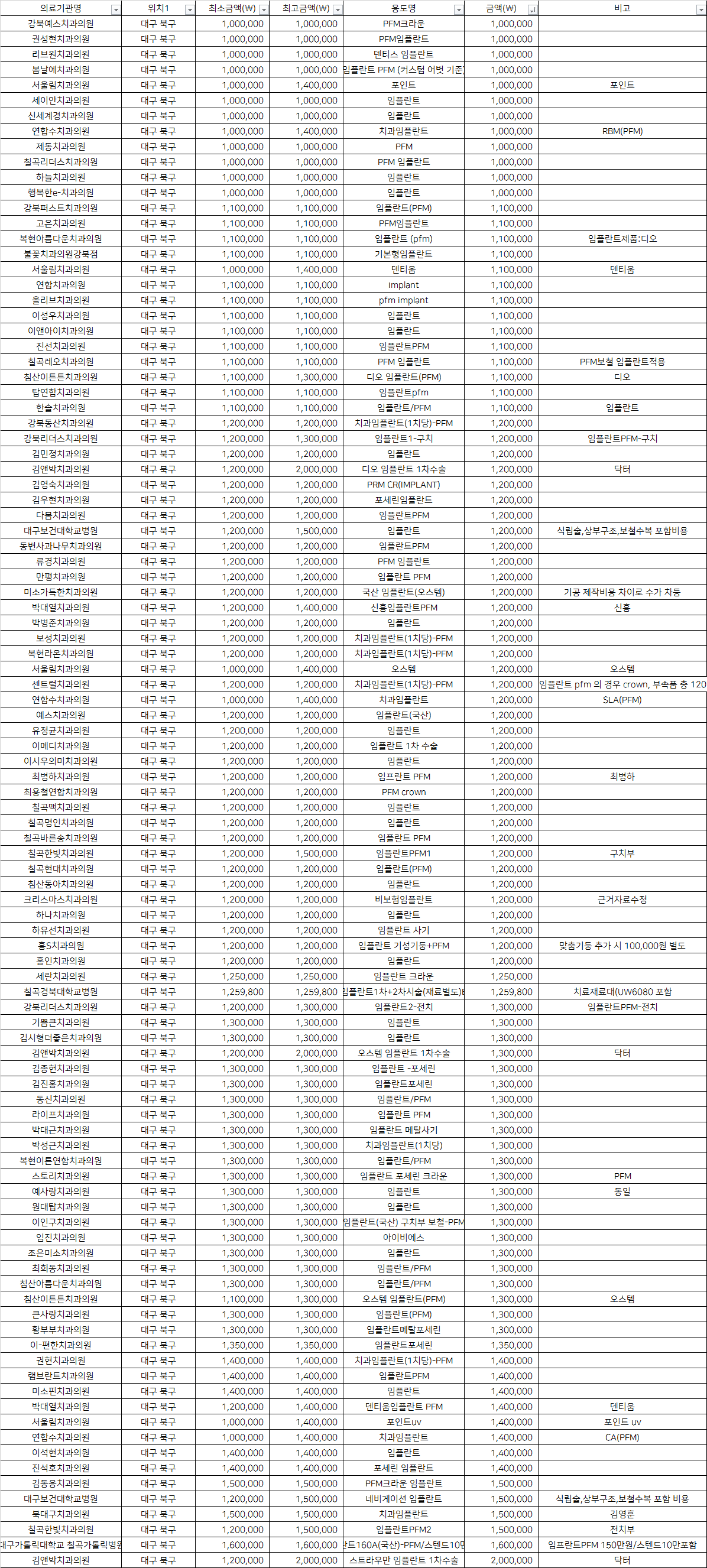 | 북대구치과의원 | 치과임플란트 | 1,500,000 | 김영훈 |