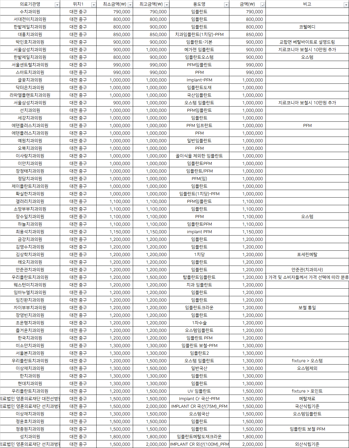 한밭제일치과의원 임플란트               800,000 코웰메디