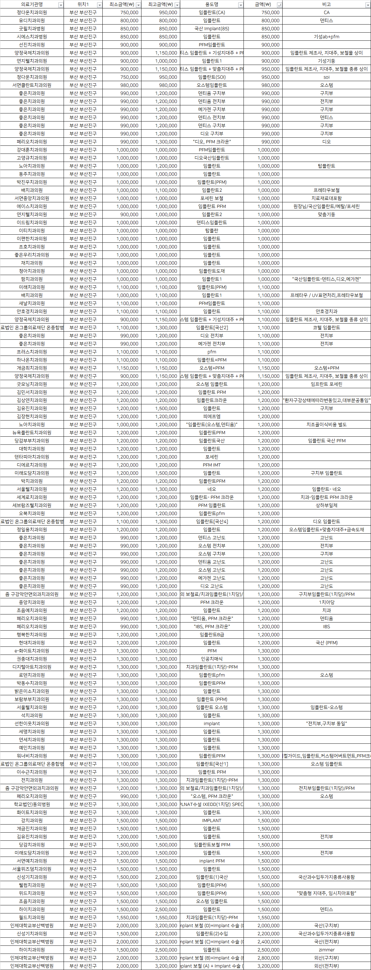 | 당감부부치과의원 | 임플란트국산 | 1,200,000 | 임플란트 국산 PFM |