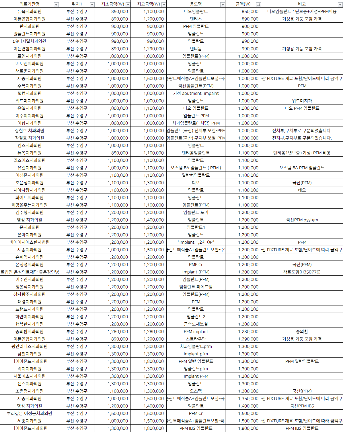 | 광안리더스치과의원 | 치과임플란트pfm | 1,300,000 | |