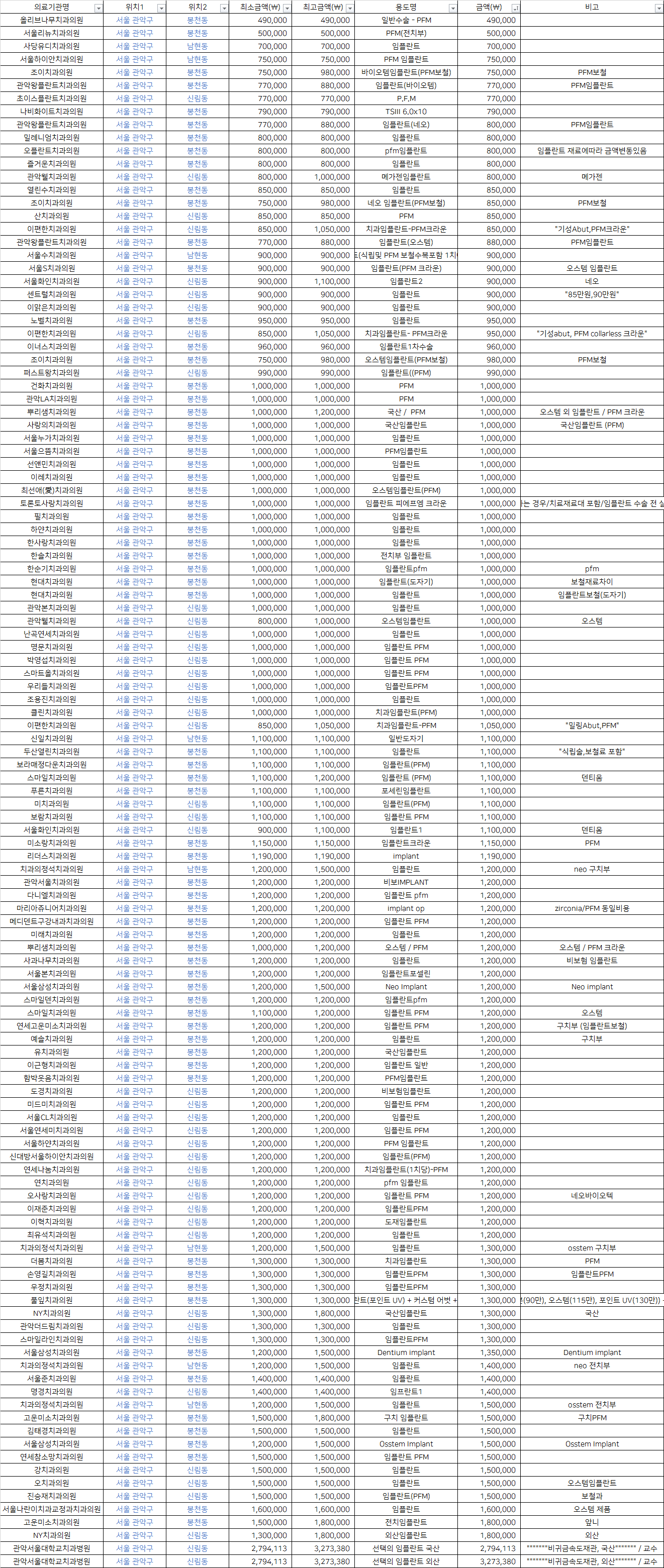 | 산치과의원 | 신림동 | PFM | 850,000 | |
