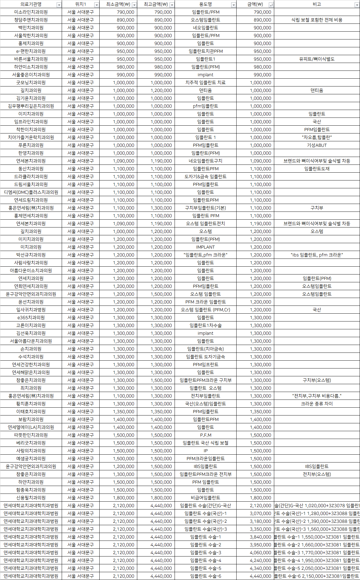 | 서울좋은이치과의원 | implant | 990,000 |