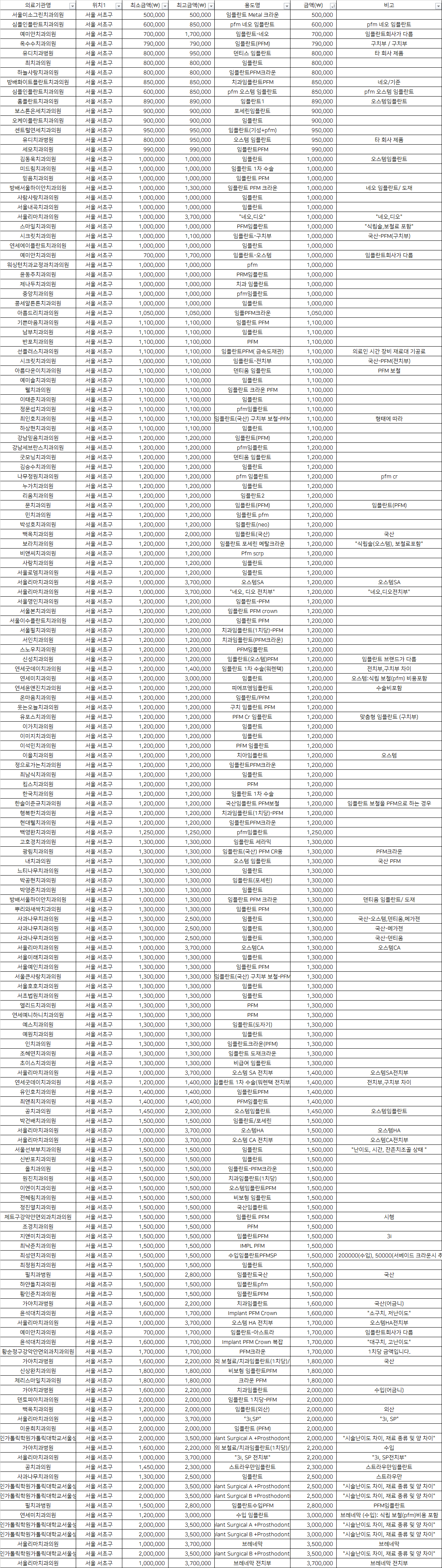 | 세모치과의원 | 임플란트PFM | 990,000 |