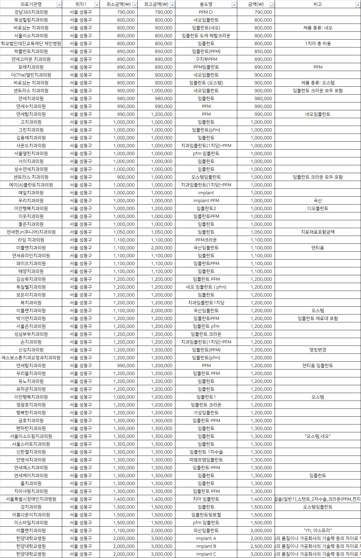 | 연세치과의원 | 임플란트 | 980,000 | |