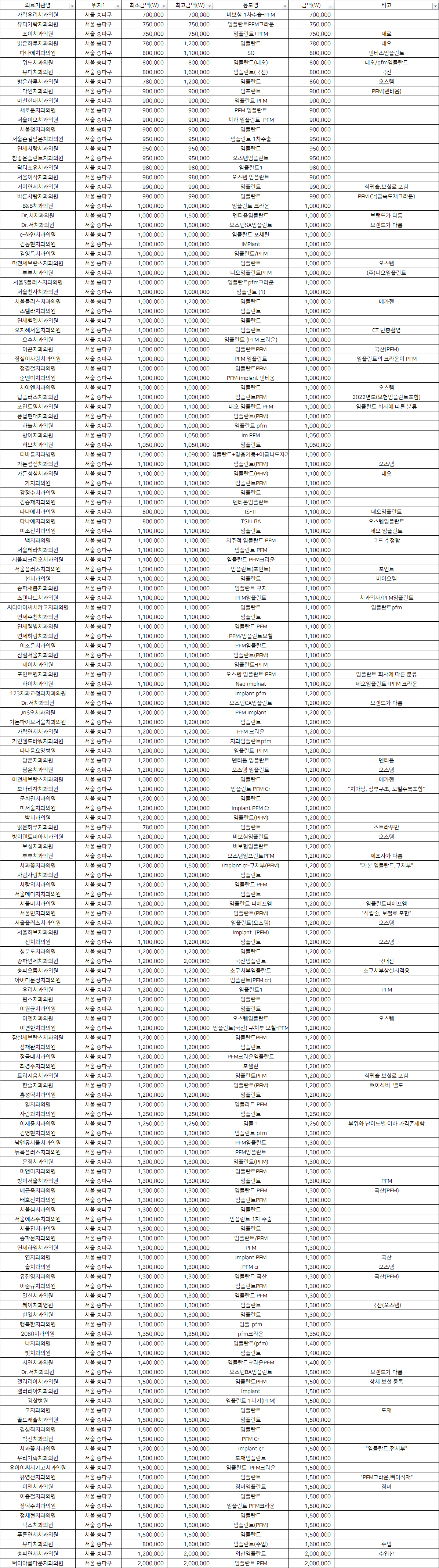 | 서울청치과의원 | 임플란트 | 900,000 | |
