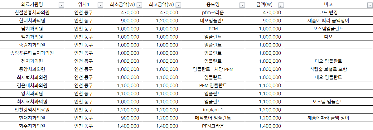 인천광역시의료원 implant 1           1,200,000
