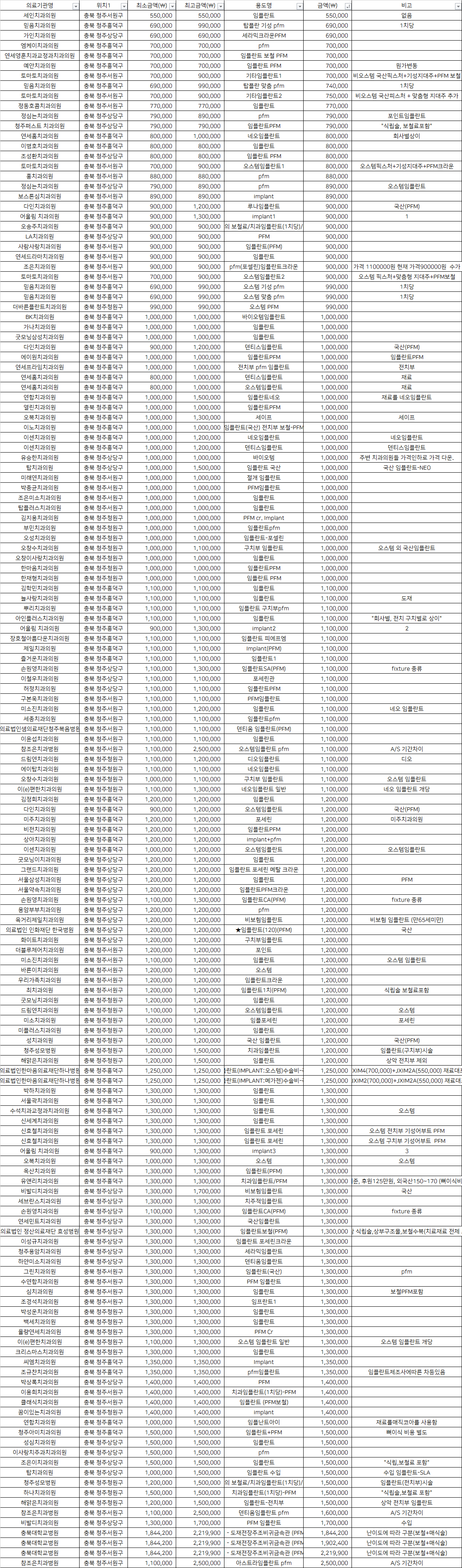 | 믿음치과의원 | 흥덕구 | 오스템 기성 pfm | 990,000 | 1치당 |