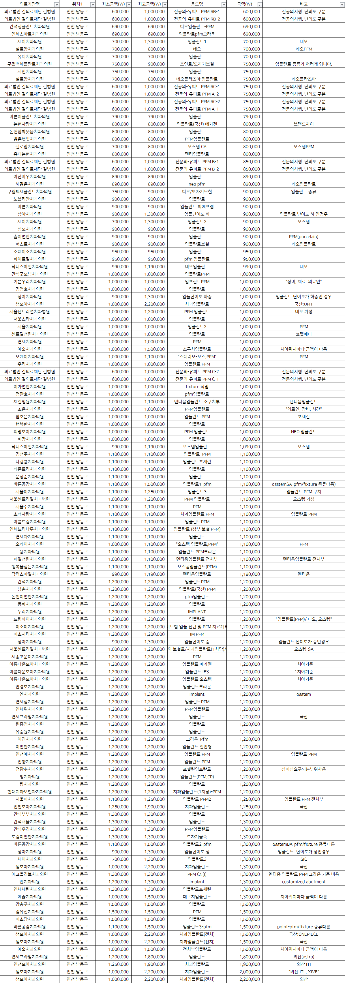 | 인천모아치과의원 | 치과임플란트 | 1,250,000 | 국산 |
